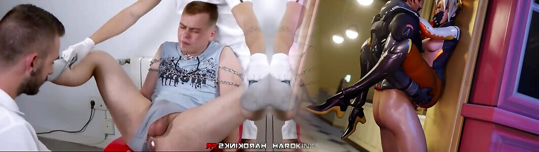 Elder therapists blowing youthful boy and dudes physical exam homo flick and