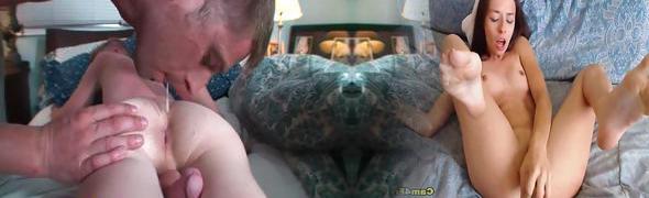 Young Jamie Satin sucking jizz-shotgun before furry bareback