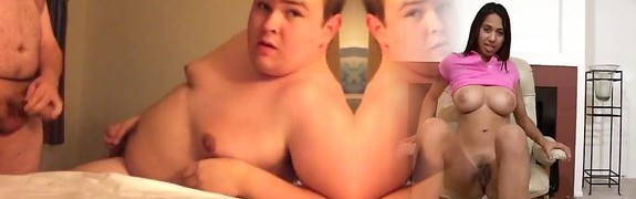 Gay-for-pay and gay and obese gal make kinky threesome online