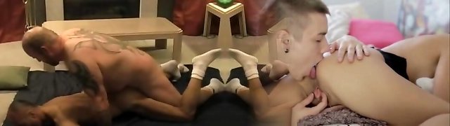 Older gay gets anal while is gargling