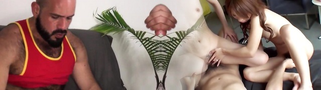 Tigerr Benson is a obese Japanese office slut who invites 2 hunks to her home